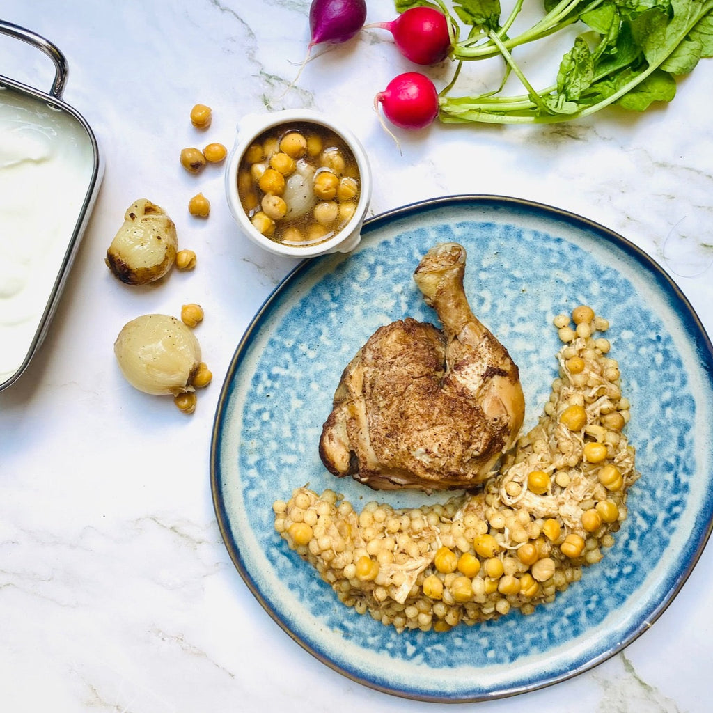 Chicken Moughrabieh with Onions and Chickpea Gravy