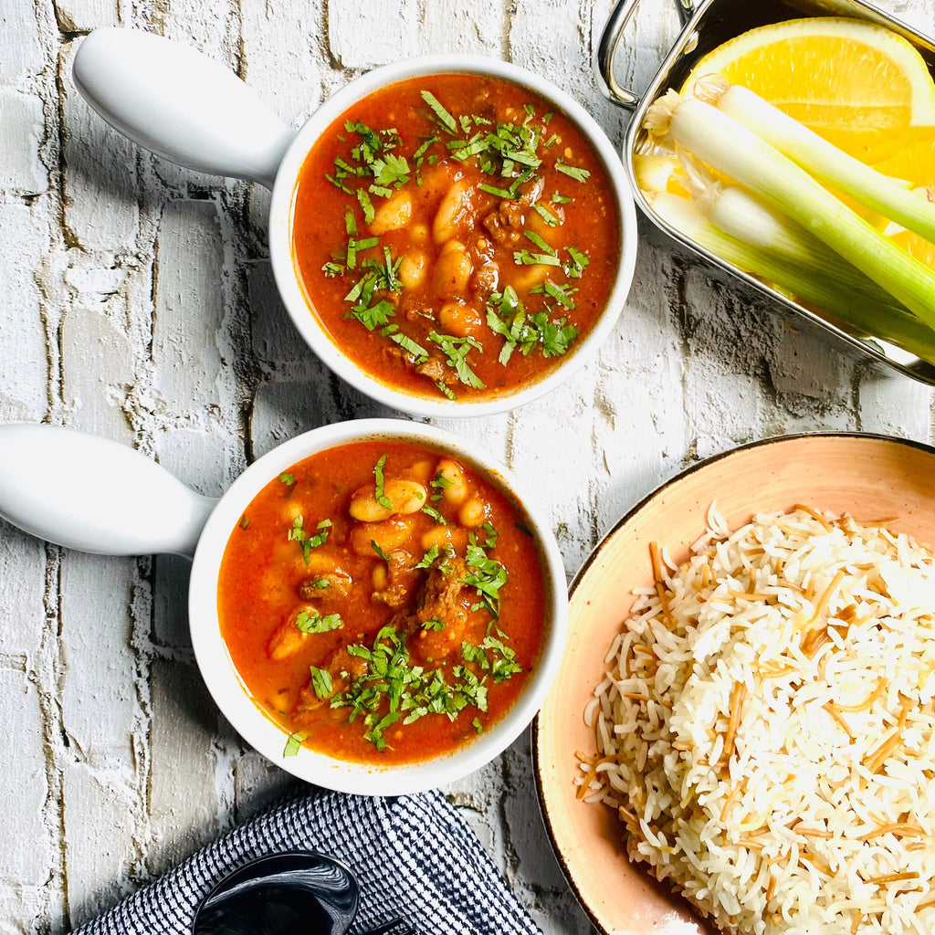 Fassoulia Baida- White Bean Stew with Beef and Vermicelli Rice